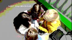 Vom 27. bis 30.12.2022 trafen sich 10 Kinder im Alter von 10 - 14 Jahren bei Akki in der Mitmach-Ausstellung "hää?" zum Thema Sprache. Konzentiert und engagiert entwickelten sie, unterstützt vom Profi Canuto eigene Rap-Texte. Am Ende stand diese Werkschau vor den gerade anwesenden Ausstellungsbesuchern.